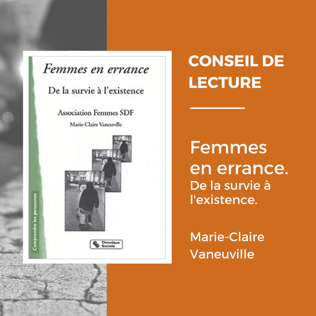 Femmes en errance, de la survie à l'existence, de Marie-Claire Vanneuville est un ouvrage qui pose le problème des femmes seules sans domicile - problème souvent occulté. Il restitue la parole de ces femmes. Il procure des clés de compréhension et des propositions adaptées pour assurer un renforcement et la création de dispositifs d'appuis intégrant les spécificités à prendre en compte.