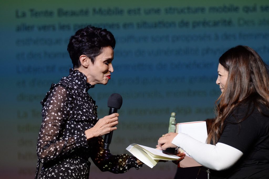 A l'occasion de la première Remise des Prix DAPAT 2021, elle a remis un prix à l'association Tente Beauté Mobile pour leur action remarquable pour les femmes en situation de précarité.