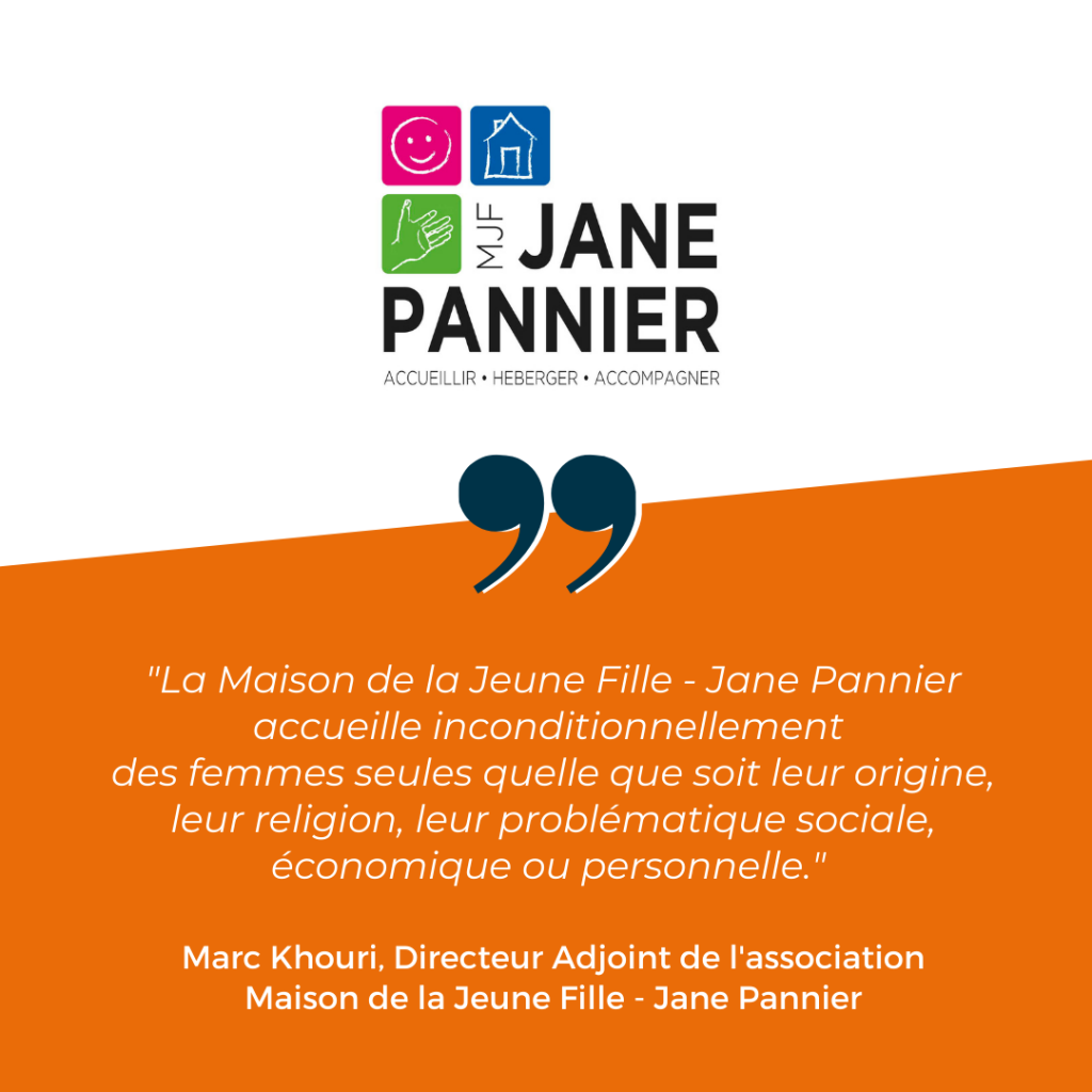 La Maison de la Jeune Fille - Jane Pannier accueille inconditionnellement des femmes seules quelle que soit leur origine, leur religion, leur problématique sociale, économique ou personnelle. Au quotidien, une équipe pluridisciplinaire veille à la satisfaction des besoins vitaux des personnes accueillies ainsi qu’à leur apporter écoute, soutien et orientation pour accéder ou recouvrer leur autonomie personnelle et sociale. Cette équipe est renforcée à temps partiel par une psychologue, une infirmière et un médecin pour favoriser l’accès à la prévention, aux droits et aux soins (somatiques, psychiques, psychiatriques) des personnes accompagnées.