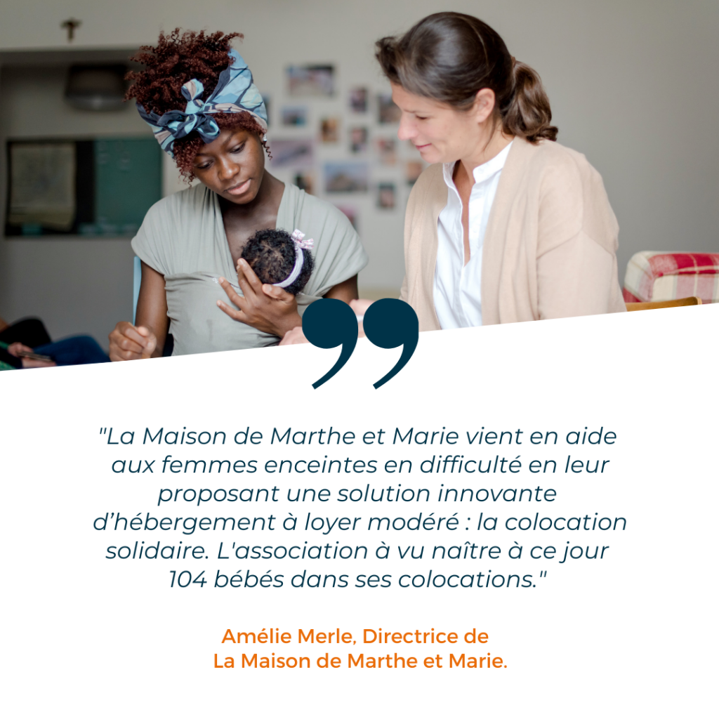 C’est en 2010 à l’initiative d’Aline Dard, une sage femme touchée par certaines jeunes mamans qui se retrouvent à la rue avec leur nourrisson de 3 jours que l’association de la Maison de Marthe et Marie est créée. Elle vient en aide aux femmes enceintes en difficulté en les accueillant dans une colocation solidaire.