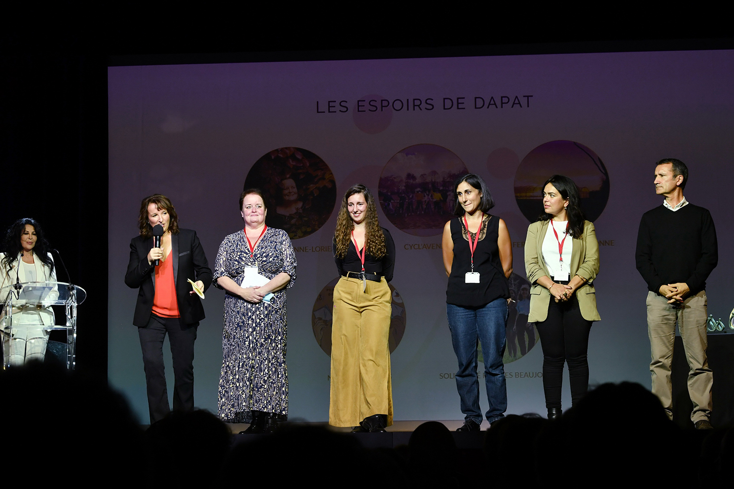 - Et le premier prix de 15 000€ a été remis par les fondateurs du Fonds de Dotation DAPAT, Danielle Rousseau de Giovanni et Patrick de Giovanni, accompagnés d’Elsa Zylberstein, la marraine de l’événement « Coups cœurs DAPAT 2021 » à l'association Femmes Debout, qui mène des actions d’accès à la santé, aux droits et de lutte contre les violences faites aux femmes.